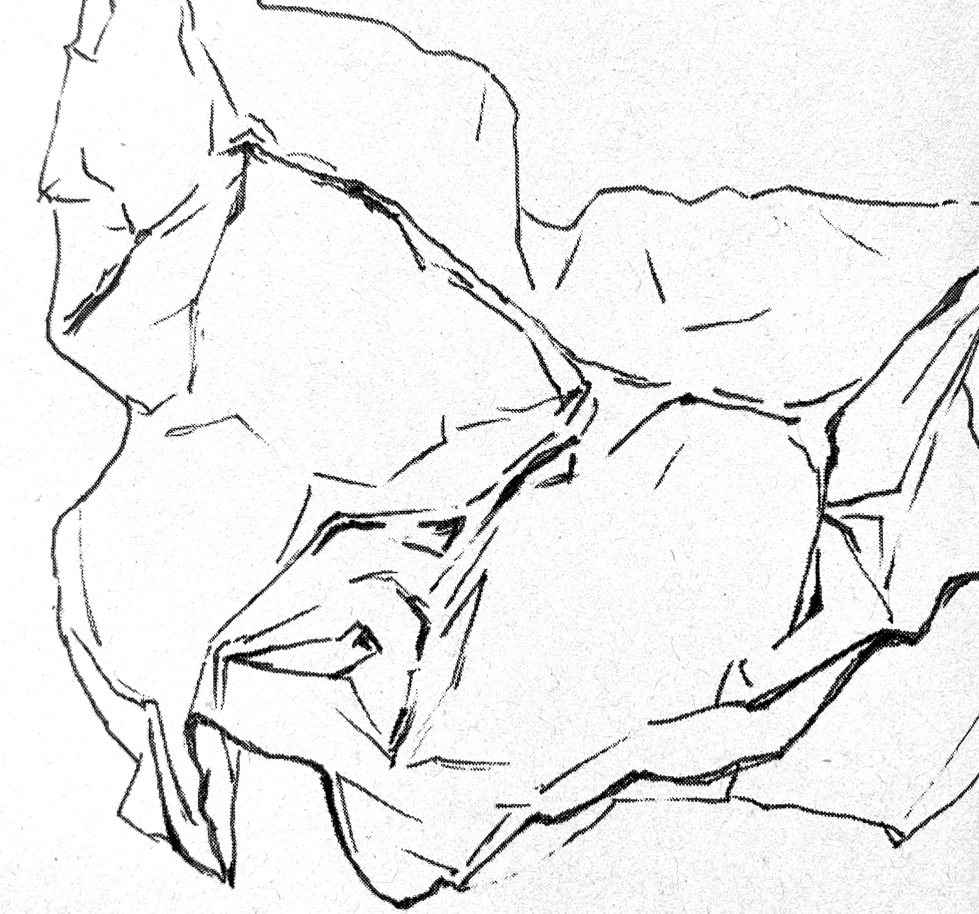 Black ink drawings combined with 38 rhyming verses in Swedish about the enigmatic personalities of trivial paper balls. Cover made of crumpled gift wrapping paper. Decorative stitches on the spine.
