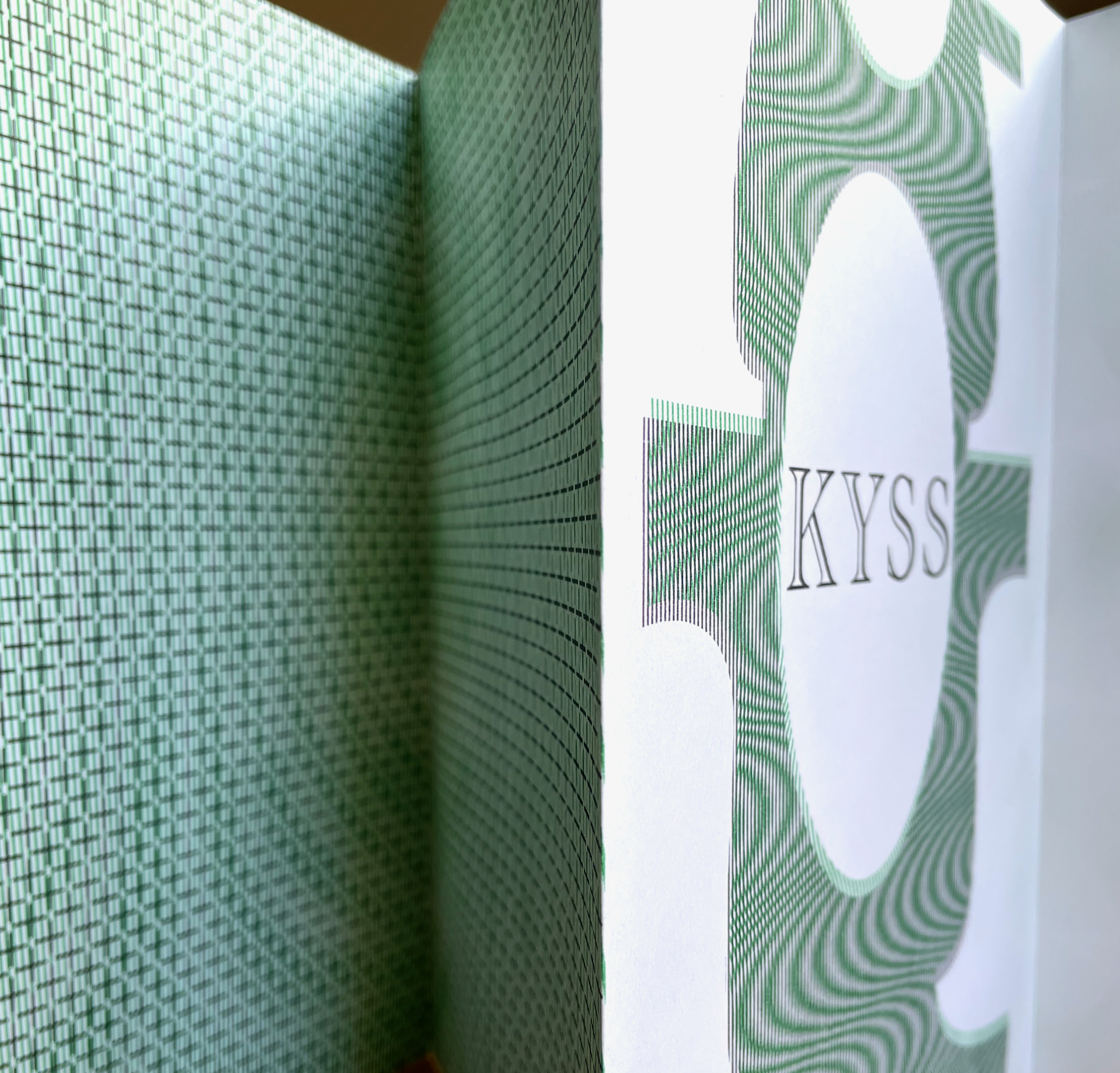 A graphic poem built of letters and images portraying a child-king and his ethics. It is part of a project using Swedish words spelled with only four letters. It accompanies the books Sten (Rock) and Kyss (Kiss) on the same theme and they make up a set with same size and design.