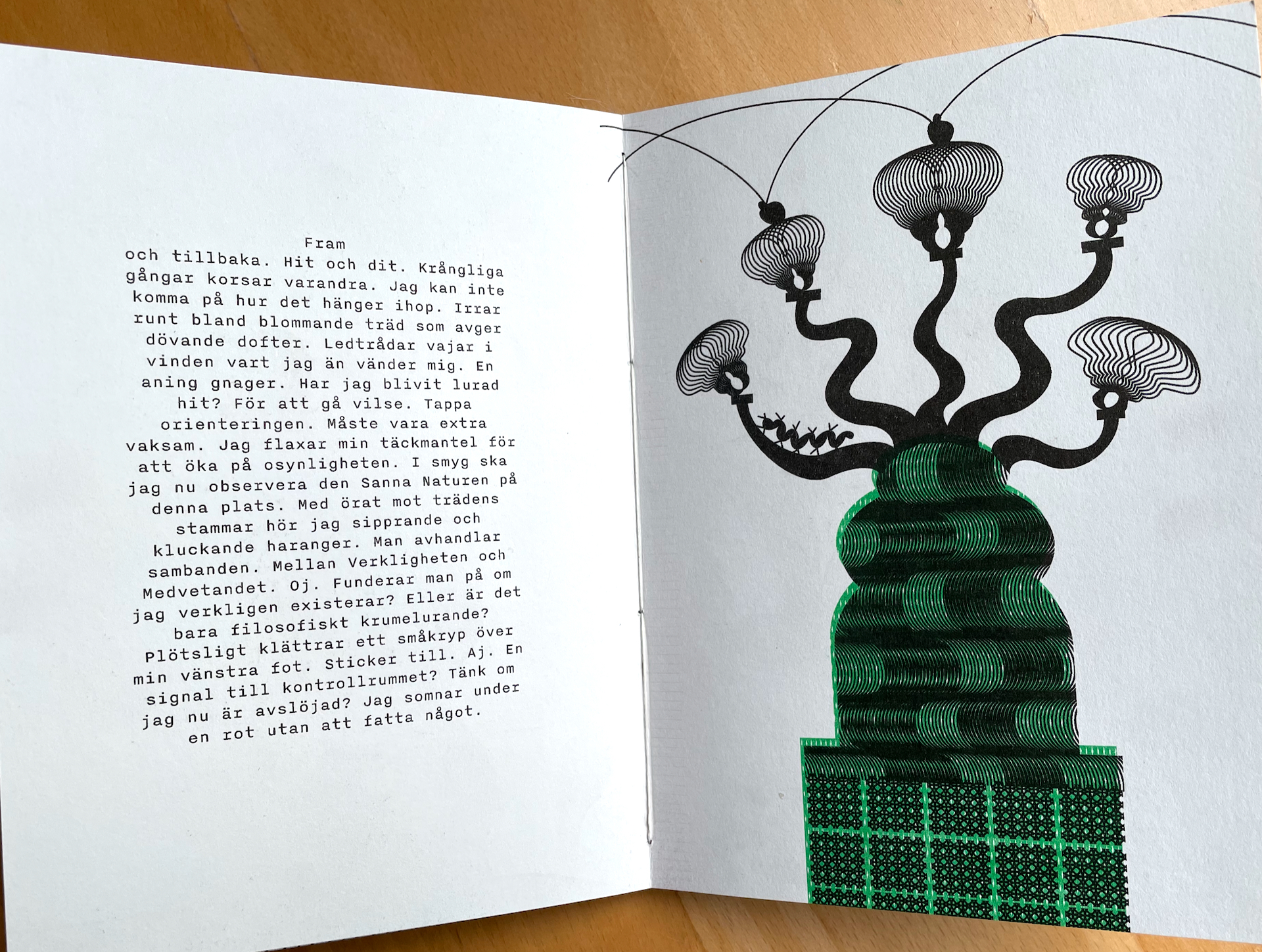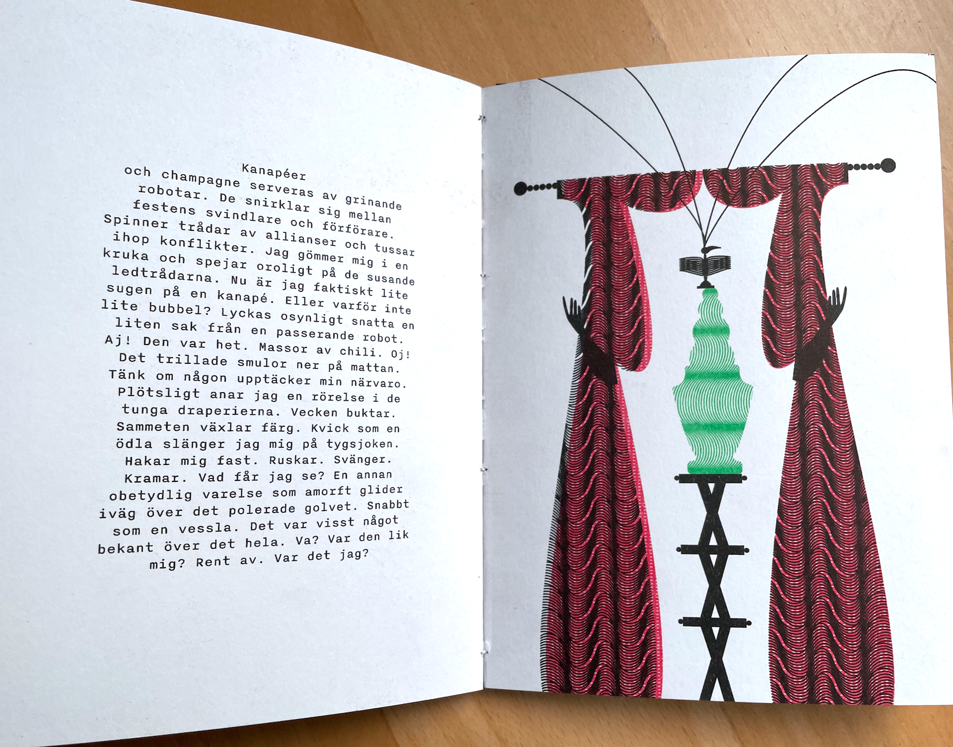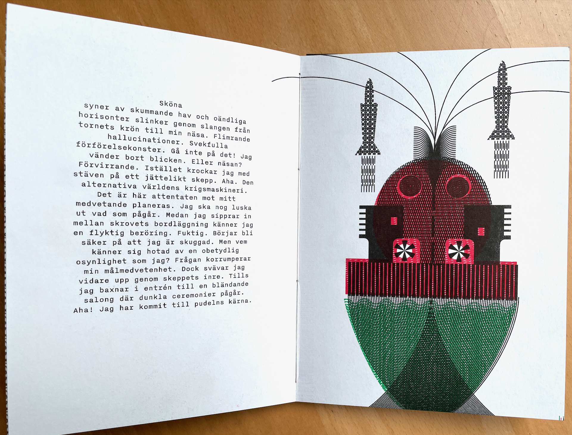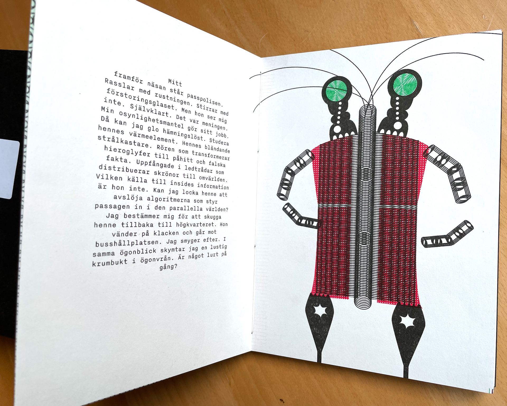 This is a story about an insignificant being who ventures into the alternative reality hoping to unravel the mechanics of illusions. She is an under cover agent and wears a cloak of invisibility but it fails occasionally and the fear of being detected bothers her. After some small mishaps she reaches the supreme brain of the machinery and the truth is exposed: this story is nothing but illusion. In the second story woven into the first a figure floating on a decorative background portrays the personality of another insignificant agent.
